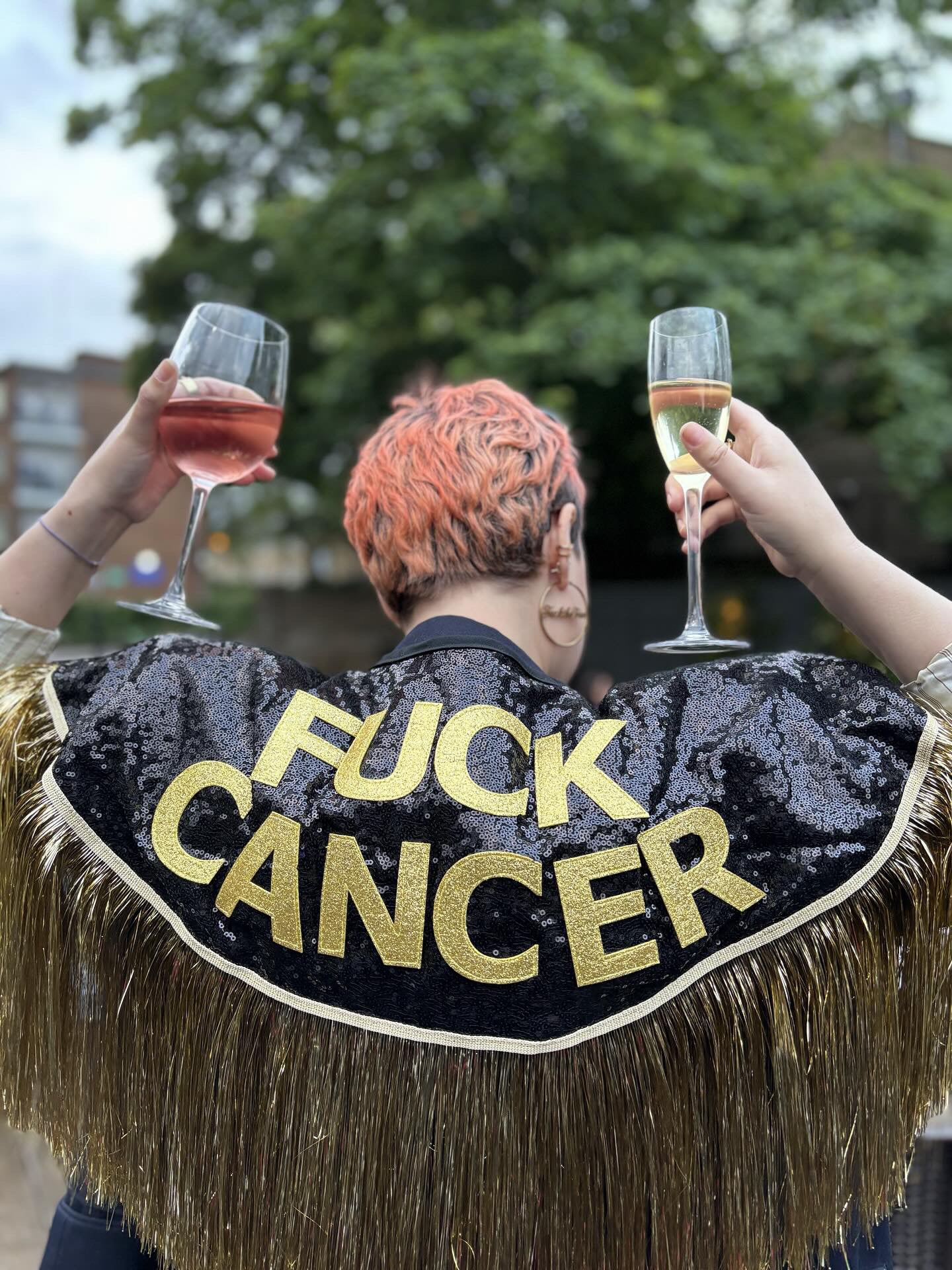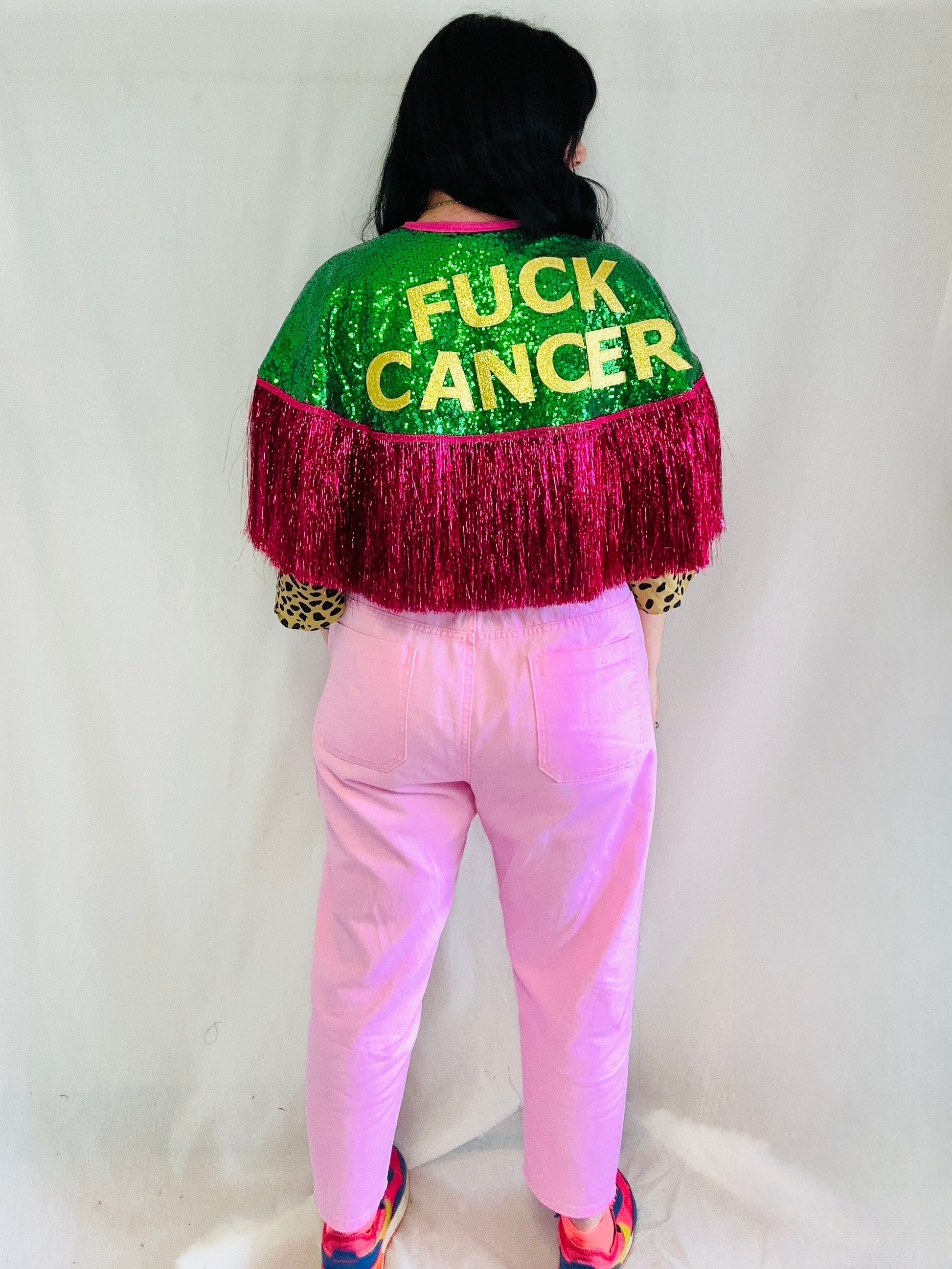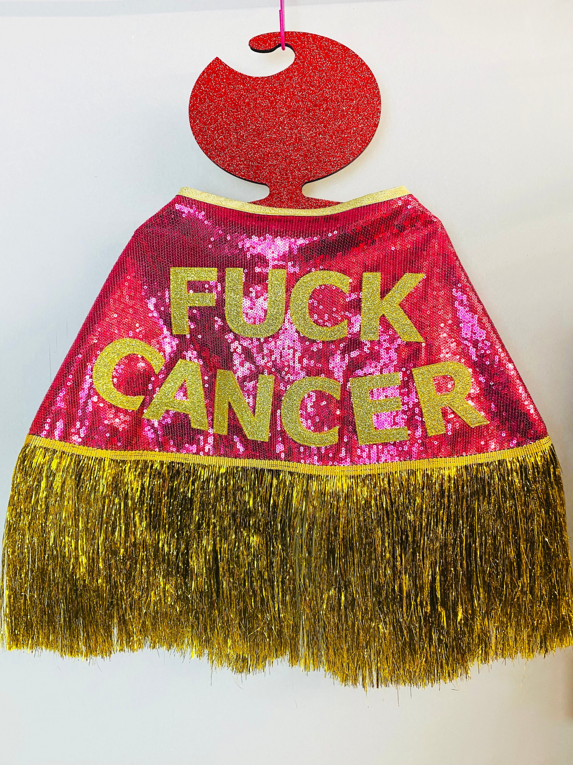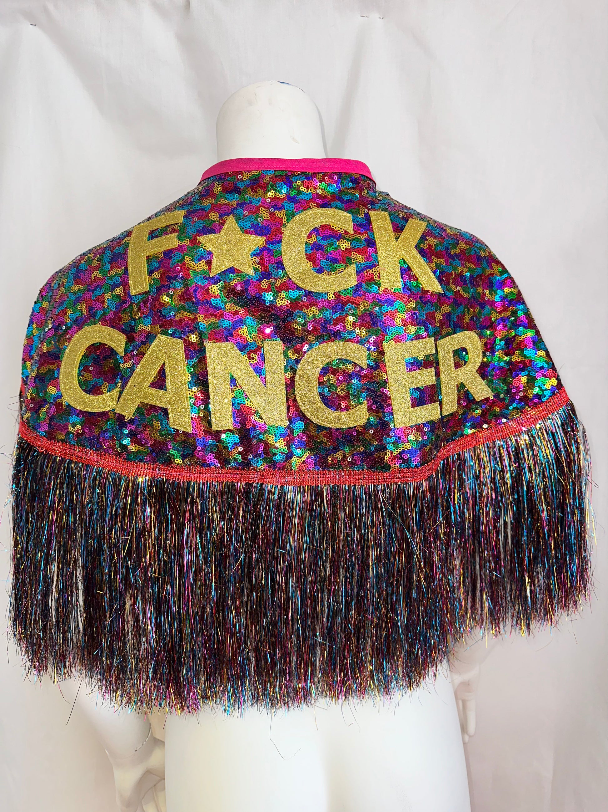 ‘FUCK CANCER’ Sequin Cape - also available censored