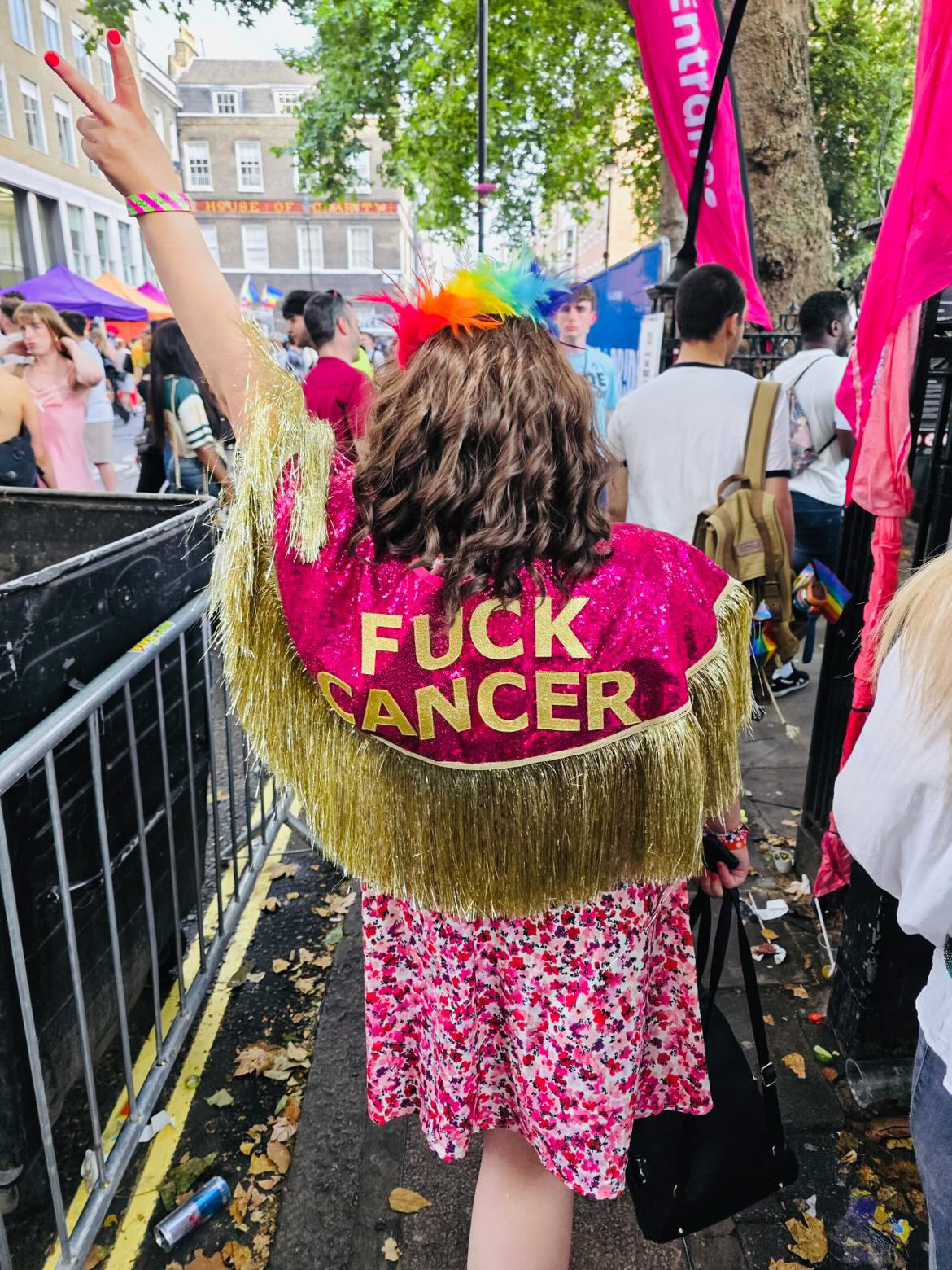 "Fuck Cancer’ cape. MIDI length. This cape can be customised in a variety of colours
