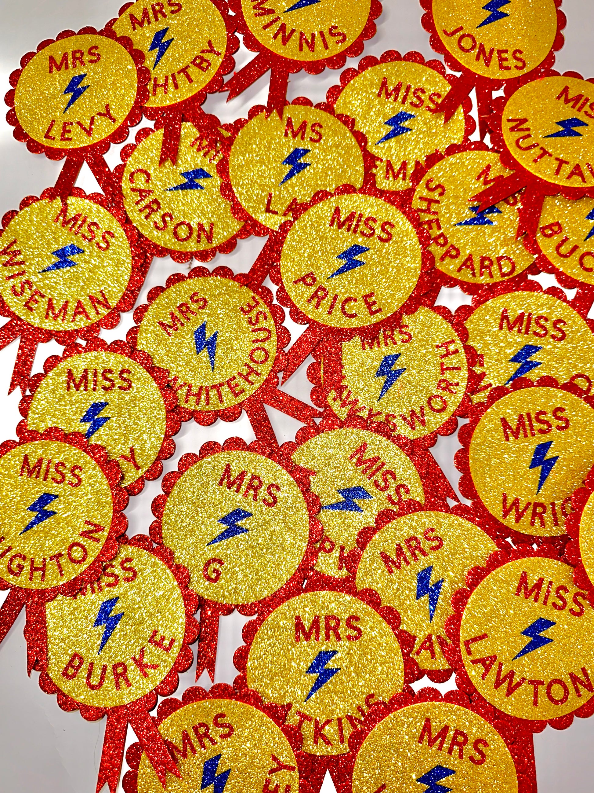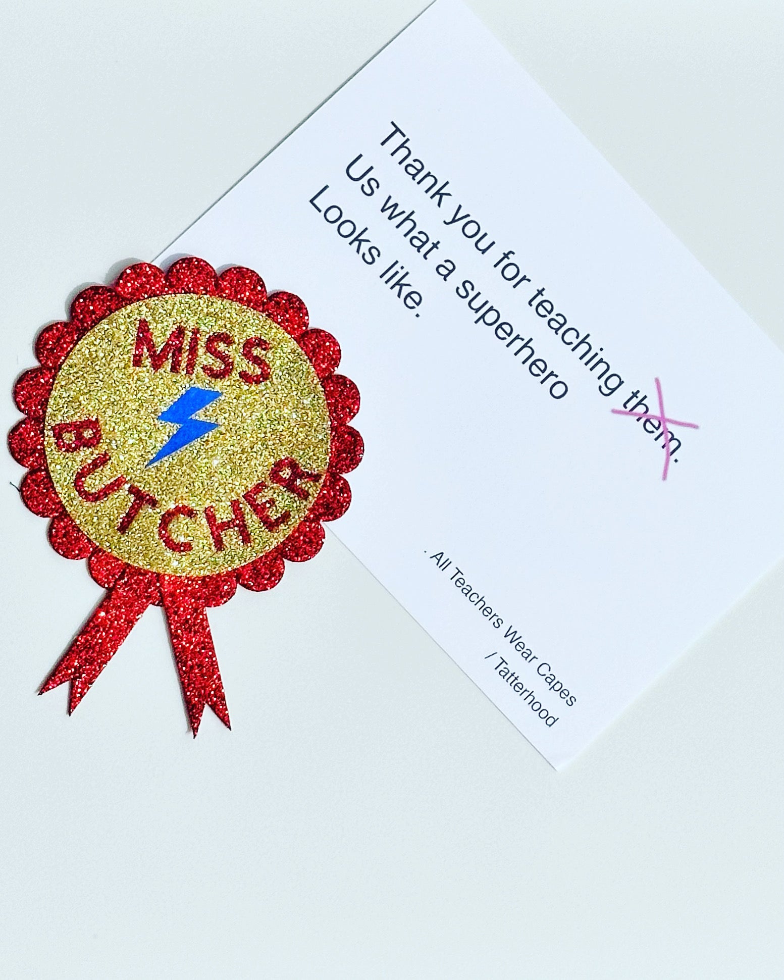 The perfect end of term gift for all those Sparkly Teachers out there! Show your utter appreciation by having your teachers name on a sparkly rosette.