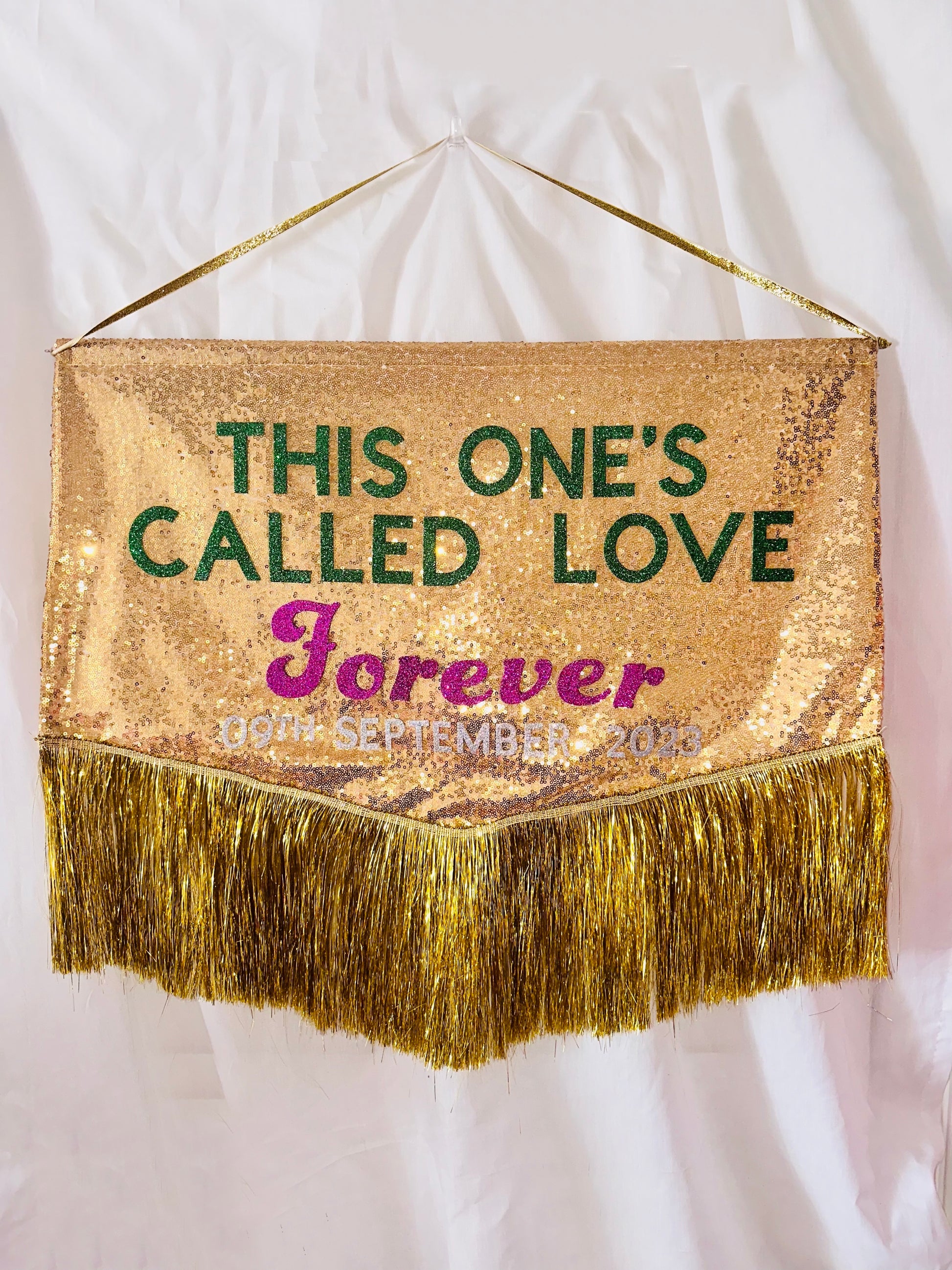 This banner can be ordered with the wording of your choice to say your own personal message. ie a phase or saying that is sentimental to you or your wedding date and Mr & Mrs/ Mr&Mr/Mrs & Mrs etc) the letters will be scaled accordingly to fit.