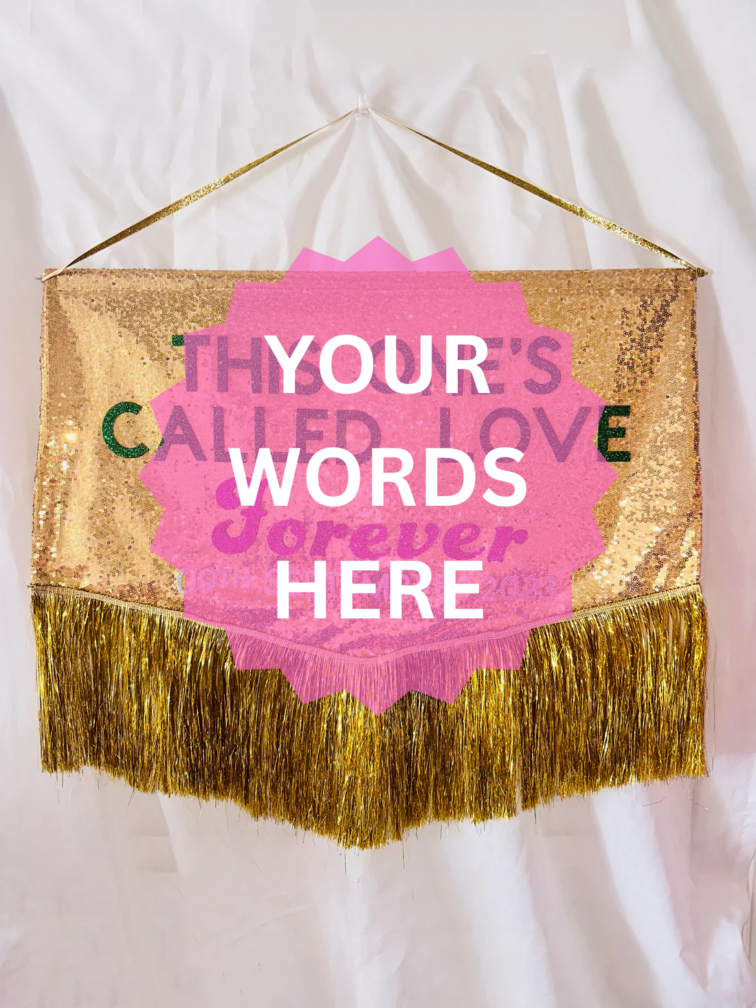 Fully customise this banner by choosing the colour of your sequins, glitter writing and tinsel tassels!